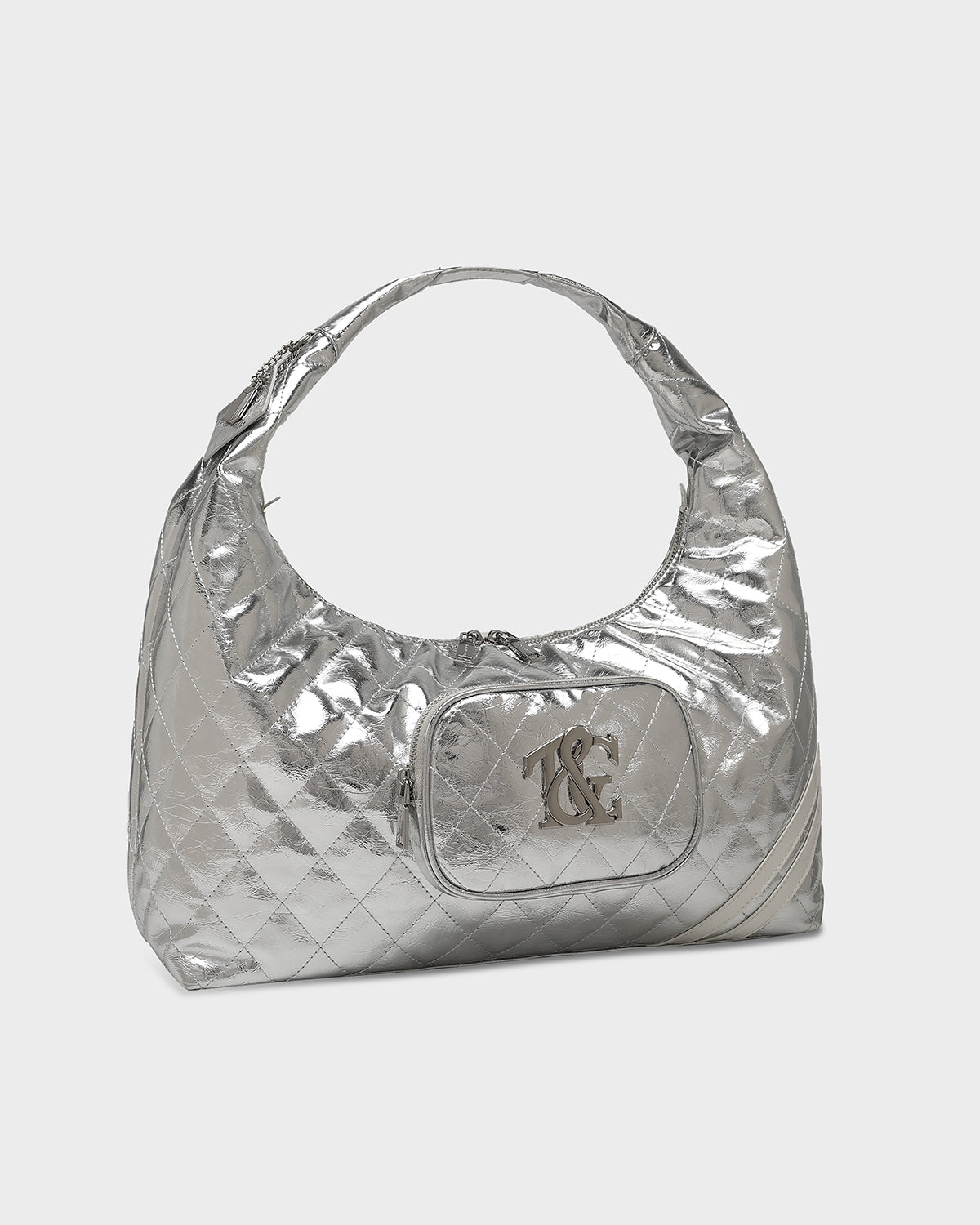 A Sparkly Statement! Indulge in the epitome of glamour with the Diamond Stitch Quilted Chic Tote Bag in Silver. This stunning accessory is crafted with a luxurious quilted design and a dazzling metallic finish, making it the perfect choice for the fashion-forward individual.