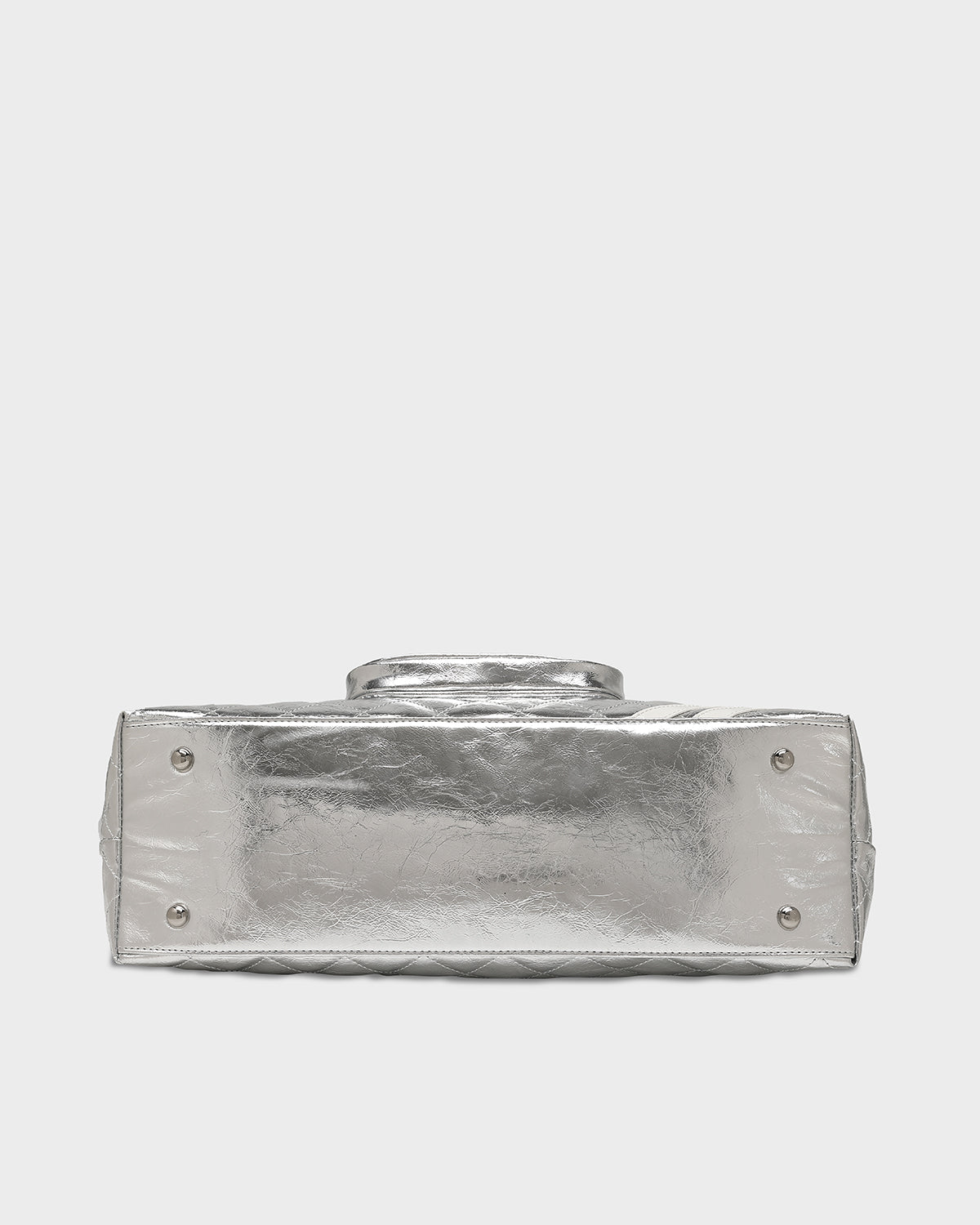 Diamond Stitch Quilted Chic Tote Bag in Silver
