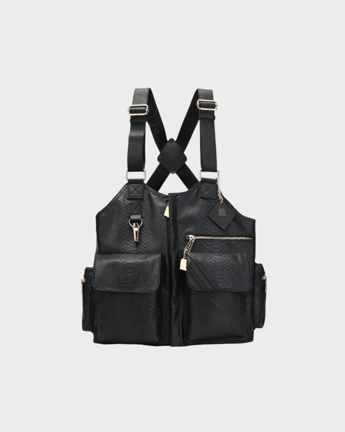 Introducing the Black Tactical Leather Vest. This modern vest is perfect for both casual and formal occasions, combining fashion and function for unbeatable style. Designed with the latest trends, it ensures optimal comfort and durability. Ideal for carrying keys, wallet, checkbook, credit cards, and other small personal belongings, it¡¯s the perfect vest for work, errands, or travel.